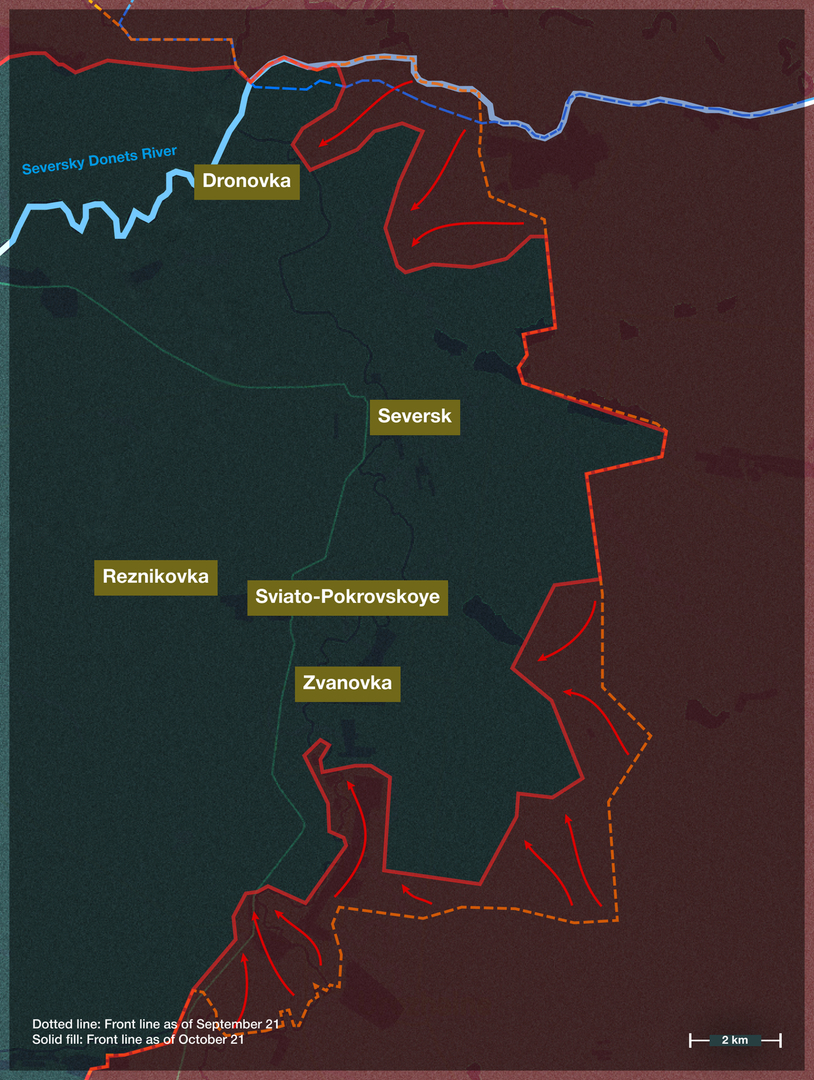 Sewersk ist eine weitere Schlüsselposition auf dem Weg zur Linie Slawjansk–Kramatorsk. Die hiesige Offensive ist mit den Kämpfen um Liman synchronisiert, da Sewersk die einzige direkte Route von der Front nach Slawjansk darstellt. Seit 2023 war es in diesem Gebiet relativ ruhig, doch nun sind die Kämpfe wieder aufgeflammt.