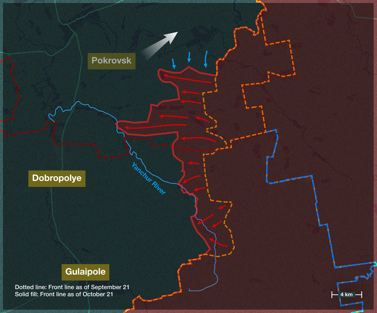 Seit dem 20. September sind Truppen aus dem östlichen Militärbezirk Russlands entlang einer 26 Kilometer langen Front sechs bis zwölf Kilometer vorgerückt, haben zehn Siedlungen eingenommen und den Fluss Jantschur im Süden überquert. Das nächste operative Ziel besteht darin, die Kontrolle entlang des gesamten Flusses auszuweiten und die Straße Pokrowsk–Guljaipolje zu sichern – ein Schritt, der Guljaipolje effektiv in eine Halbumzingelung bringen und die Voraussetzungen für einen späteren Angriff schaffen würde.