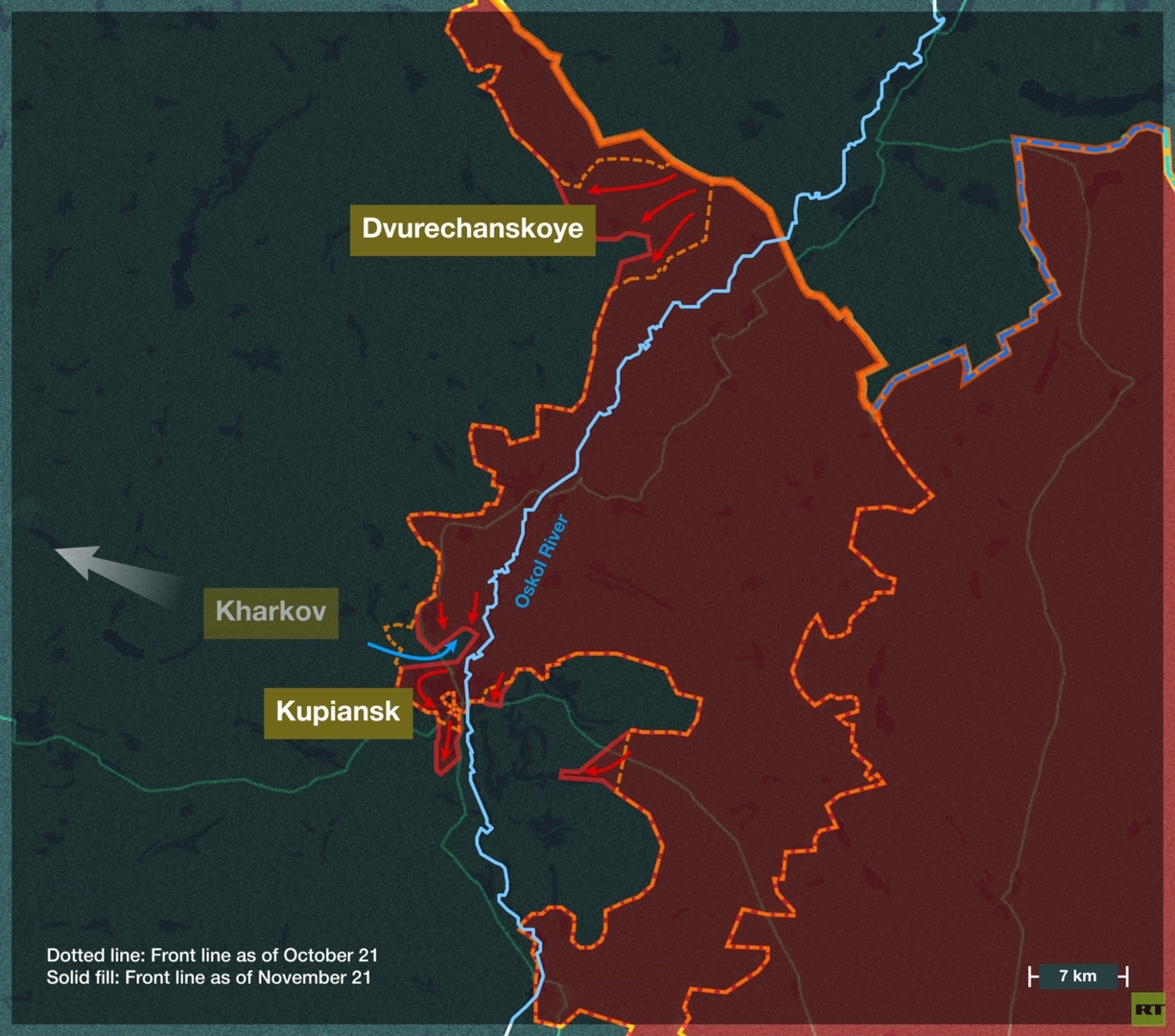 Der Feind nutzte jedoch einen verwundbaren Frontabschnitt jenseits des Flusses aus und versuchte, die Stadt zurückzuerobern. Russische Truppen mussten sich aus einigen Gebieten zurückziehen; Stand 24. Dezember befand sich der größte Teil des Stadtgebiets weiterhin in einer Grauzone, also in einem umkämpften Gebiet, das keine der beiden Konfliktparteien kontrolliert.