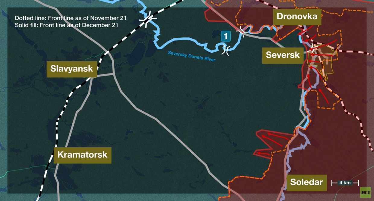 Am 11. Dezember wurde Sewersk offiziell befreit. Die Stadt wurde in weniger als einem Monat eingenommen, was angesichts der aktuellen Konfliktsituation bemerkenswert schnell ist. Nachdem die russische Armee Ende November die Kontrolle über beide Hauptzufahrtsstraßen zur Stadt erlangt hatte, war ihr Schicksal besiegelt.