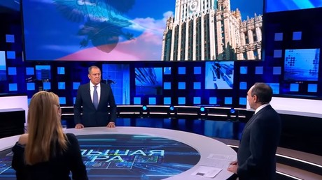 Auf die Frage des Moderators, ob Merkel und Macron dies nicht vermochten, weil sie es nicht wollten, antwortete Lawrow: "Möglicherweise, ja."