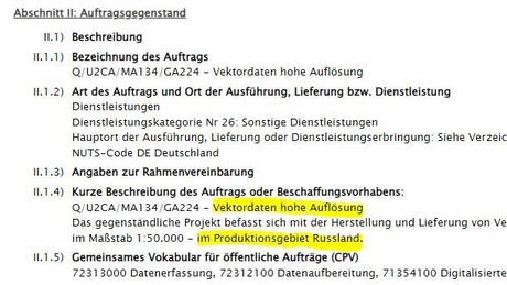 Im September vergangenen Jahres hatte die Bundeswehr einen Auftrag zur Erstellung vektorbasierten Kartenmaterials über das Gebiet der Russischen Föderation vergeben. Die Welt und RT DE hatten darüber Anfang Oktober berichtet.