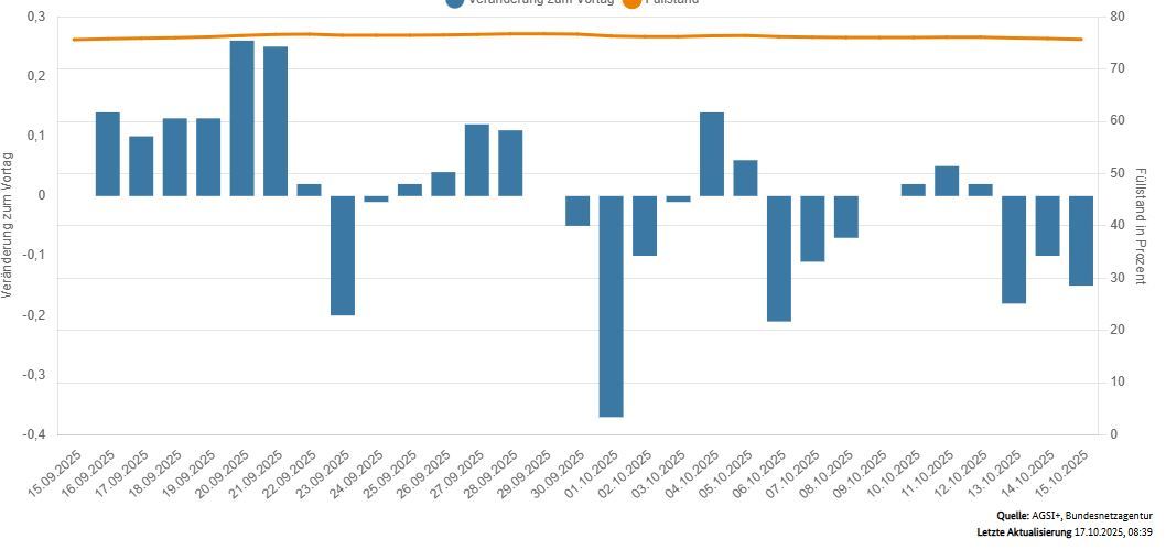 Die zweite Grafik zeigt eine 30-Tage-Übersicht mit der Darstellung der Veränderung der Gas-Speicherfüllstände: