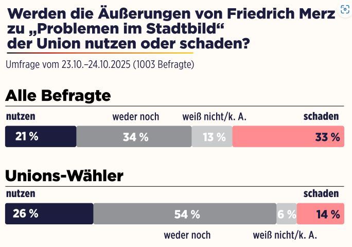 Zum medial-politischen Aufreger der Woche, der sogenannten "Stadtbild-Aussage" von Kanzler Merz, wurde folgende Grafik im Artikel präsentiert: