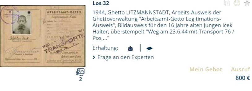 "Der Brief eines polnischen Auschwitz-Häftlings aus dem Jahr 1940 für 180 Euro? Die Gestapo-Karteikarte mit Informationen zur Hinrichtung eines jüdischen Bewohners des Ghettos Mackheim in Ostpreußen im Juli 1942 für 350 Euro? Oder doch lieber die Mitteilung über den Tod einer 1944 im Rahmen der sogenannten Euthanasie ermordeten Patientin der Landesheilanstalt Hadamar, ebenfalls für 350 Euro? Vor eine solche Wahl ist die Kundschaft des Auktionshauses Felzmann am 17. November 2025 gestellt."