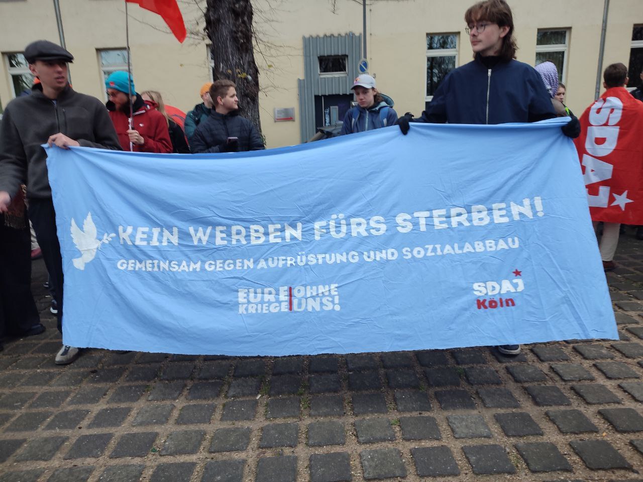 Auf der Abschlussdemonstration beteiligten sich in Köln am Samstag rund 200 Menschen vor allem aus linken Jugendorganisationen. In ihren Reden auf der Kundgebung betonten die Schülervertreter, dass sie den Kampf gegen die Wehrpflicht nicht nur weiterführen, sondern noch verstärken werden. Die aktuellen Demonstrationen anlässlich des Bundestagsbeschlusses vom Freitag für die Wiedereinführung einer angeblich freiwilligen Wehrpflicht seien erst der Anfang eines ausdauernden Widerstands.