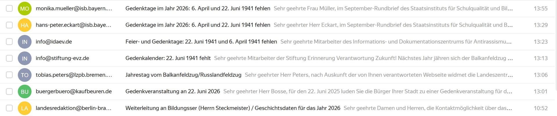 Wir haben alle sechs im Artikel genannten Stellen angeschrieben und höflich auf das Fehlen der beiden Gedenkdaten hingewiesen. Wir fragten, nach welchen Kriterien die Daten ausgewählt worden seien und ob geplant sei, die fehlenden Gedenktage künftig in die Liste aufzunehmen. Dies geschah noch lange vor den Weihnachtsferien. Dennoch bemühte sich keine der Institutionen um eine Antwort. Damit bestätigt dieses Schweigen unsere schlimmsten Befürchtungen: Die "Vergesslichkeit" der deutschen Erinnerungsverwalter ist kein Missverständnis, sondern politische Manifestation.