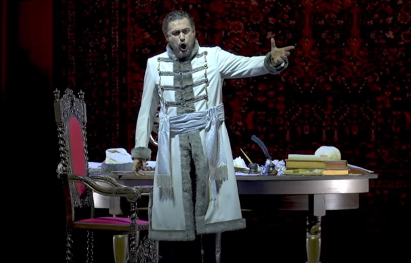 In beiden Fällen versuchten die Regisseure – Keith Warner in "Godunow" und Claus Guth in "Chowanschtschina" – sich von den historischen Bildern zu lösen, die an die dargestellte Epoche gebunden sind. Die meisten Szenen in "Chowanschtschina" wurden mit der Kamera gefilmt und auf die Leinwand projiziert, wodurch sie zu einer historischen Chronik wurden. Und im berühmten Prolog "Morgendämmerung an der Moskwa" sehen wir statt der üblichen Landschaften oder der Silhouetten des Kremls den Sekretär der Präsidialverwaltung im heutigen Russland, der Papiere zur Unterschrift bringt.