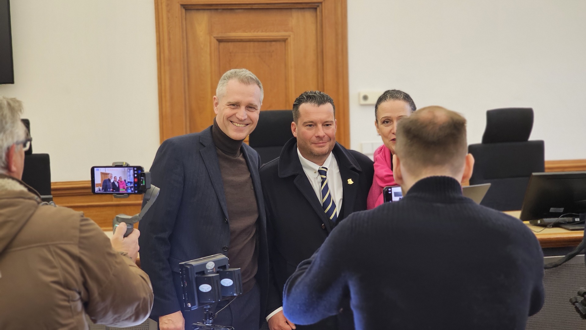 Auch der AfD-Politiker im EU-Parlament Petr Bystroň kam zu der Verhandlung, um seine Unterstützung für den Deutschlandkurier-Chefredakteur zu äußern. Auch er sieht sich als Opfer der Justiz, nachdem er während einer Wahlkampagne wegen angeblicher Nazi-Verherrlichung aufgrund eines satirischen Merkel-Memes angeklagt worden war. In der ersten Instanz verlor er das Verfahren, und setzt seine Hoffnungen nun auf den Berufungsprozess.