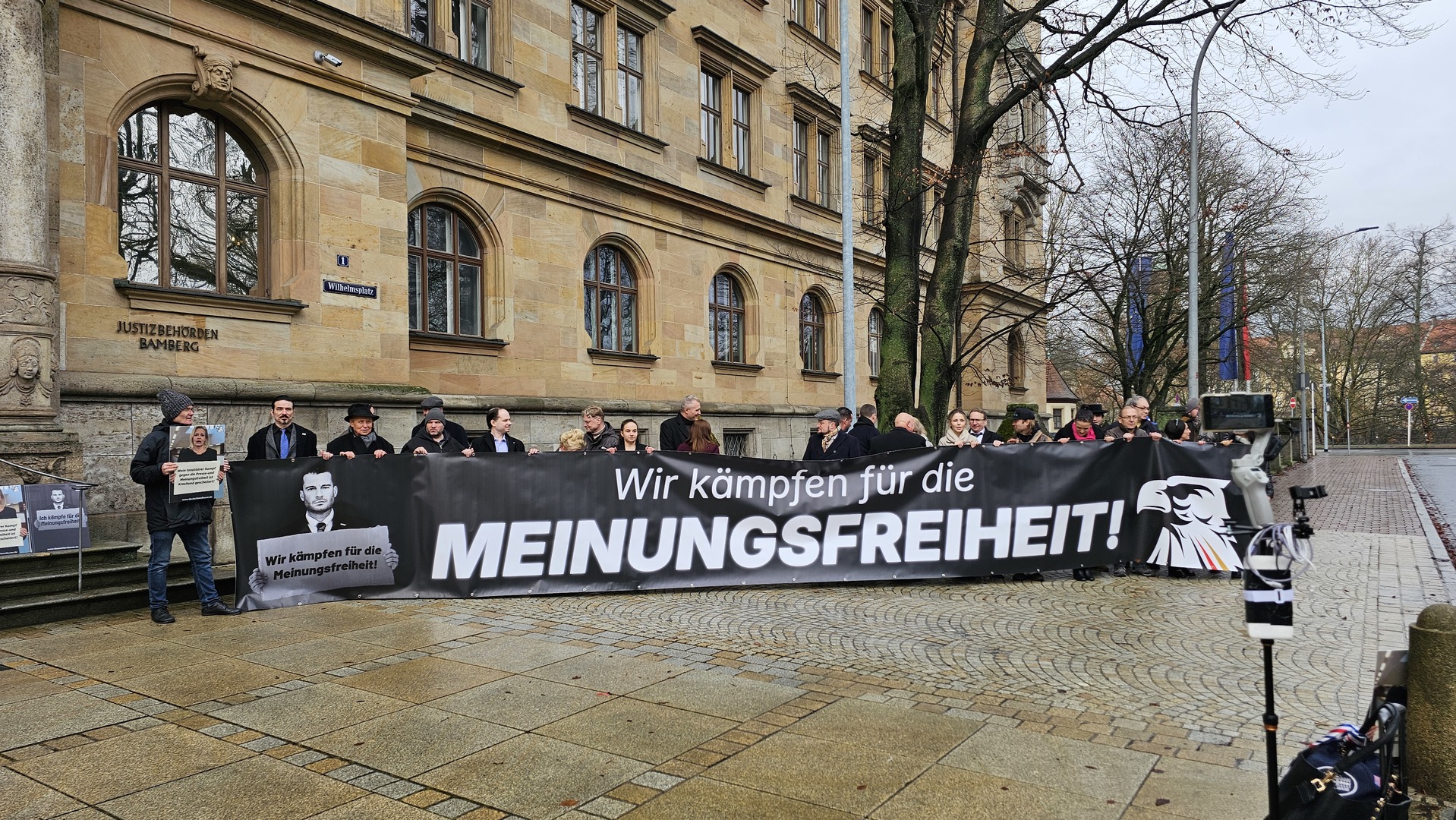 Vor dem Gerichtsgebäude haben die Unterstützer David Bendels diesen mit einem Banner begrüßt, das den Schriftzug "Wir kämpfen für die Meinungsfreiheit" trug. Befreundete Journalisten und Politiker machten ein gemeinsames Foto. Auf kleineren Plakaten ging die Meme-Offensive mit zwei Protagonisten der Gerichtsverhandlung weiter. Die Innenministerin stellte man weinend mit einem Schild in der Hand dar, auf dem stand: "Mein totalitärer Kampf gegen die Presse- und Meinungsfreiheit ist krachend gescheitert." Bendels hingegen setzte man nun als "Faeser-Besieger" in Szene.