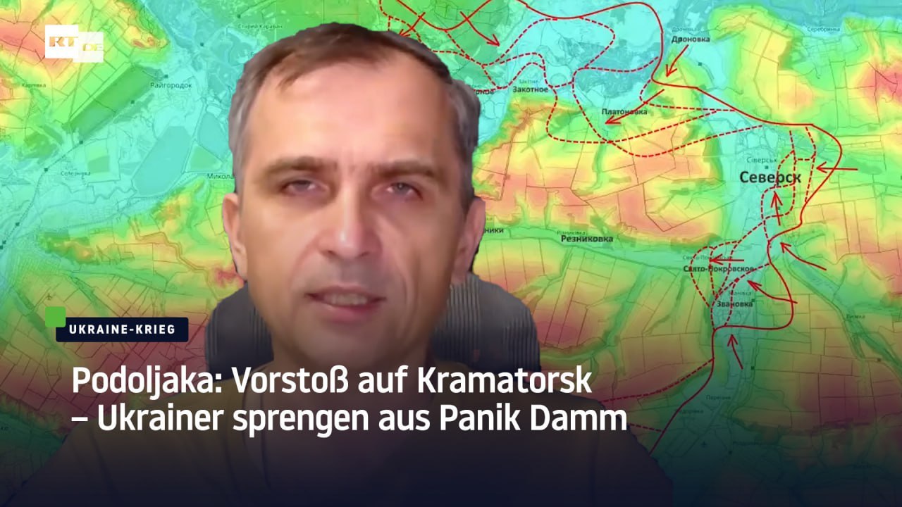 Der russisch-ukrainische Militäranalyst Juri Podoljaka berichtet in seiner aktuellen Zusammenfassung der Geschehnisse an der Front vom Vorstoß auf Kramatorsk. In den Medien des Gegners herrsche diesbezüglich regelrechte Panik, so Podoljaka. Die Lage sei so verzweifelt, dass das Kommando der 30. Mechanisierten Brigade der ukrainischen Streitkräfte beschlossen habe, einen Damm zu sprengen, um einen Durchbruch der Front zu verhindern.