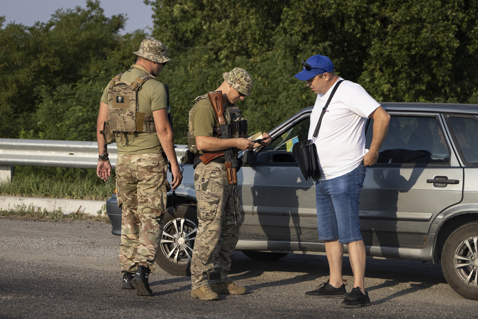 Symbolbild: Ukrainische Rekrutierer überprüfen die Dokumente eines Manns im Gebiet Dnjepropetrowsk.Danylo Dubchak/Frontliner / Gettyimages.ru In der Ukraine hat die Anzahl von Fällen des Widerstands gegen Mitarbeiter der Musterungsbehörden zugenommen, berichtet der Leiter der ukrainischen Nationalpolizei, Iwan Wygowski. In einem Interview gegenüber dem Nachrichtenportal Zensor meldet er: