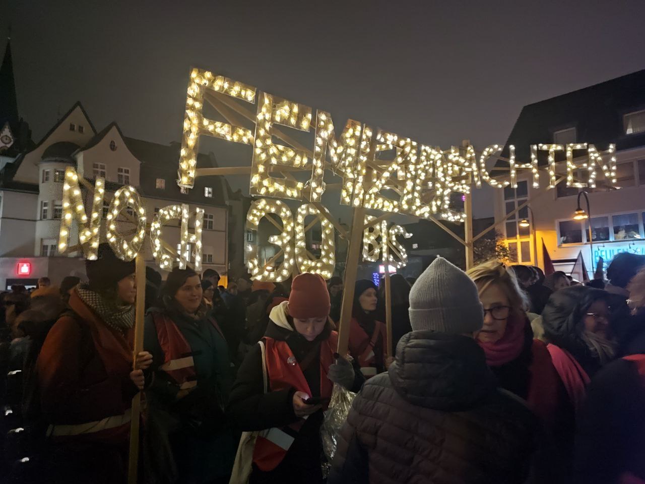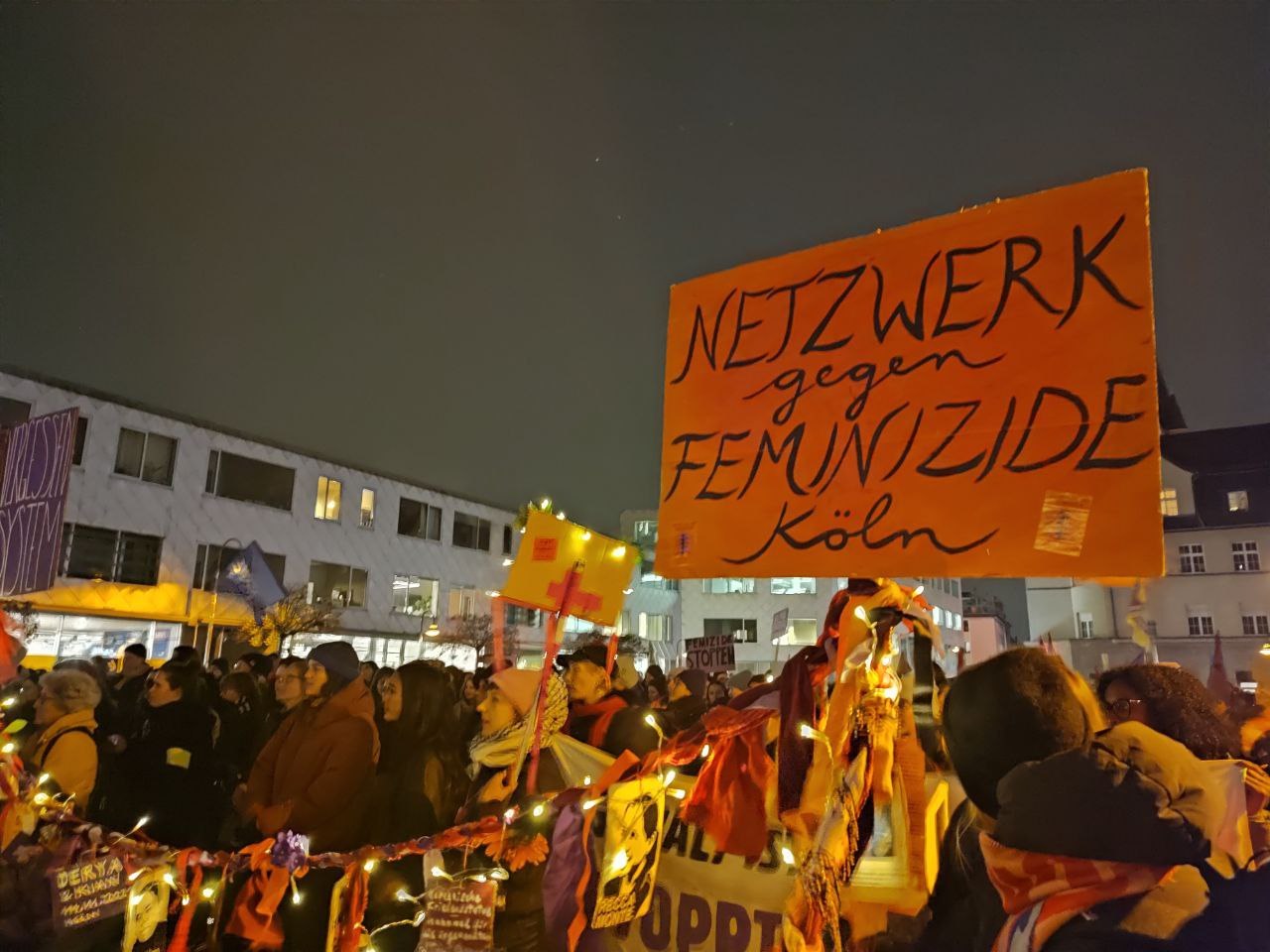 Das Bündnis Lila in Köln veranstaltete am Dienstagabend unter dem Motto "Wir nehmen uns die Nacht zurück" eine Demonstration gegen Gewalt an Frauen und Mädchen. Rund 2000 Teilnehmerinnen und Teilnehmer protestierten im Kölner Stadtteil Ehrenfeld lautstark gegen die nicht abnehmende Gewalt an Frauen und Mädchen in Deutschland und weltweit. Auf der Kundgebung setzten sich die Rednerinnen auch gegen Diskriminierung und Gewalt an Menschen mit transsexuellen Identitäten ein.