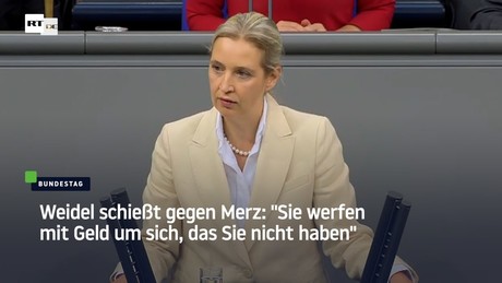 Um seinen "eigenen Bedeutungsverlust zu kaschieren", habe Merz mit der "der Brieftasche des deutschen Steuerzahlers gewedelt" und einen dreistelligen Millionenbetrag für den Wiederaufbau des Gazastreifens versprochen, ohne überhaupt zu wissen, wer dort das Sagen haben werde, so Weidel.