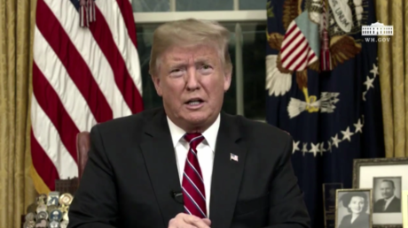 "Sie belastet die öffentlichen Ressourcen und senkt Arbeitsplätze und Löhne. Zu den am stärksten betroffenen Personen gehören Afroamerikaner und Lateinamerikaner. Unsere Südgrenze ist eine Pipeline für riesige Mengen an illegalen Drogen, darunter Meth, Heroin, Kokain und Fentanyl. Jede Woche werden 300 unserer Bürger allein durch Heroin getötet, wovon 90 Prozent über unsere Südgrenze fließt," erklärte Trump, und dass sich die Mauer quasi selbst finanzieren würde durch ihre Wirkung und indirekt durch das Handelsabkommen mit Mexiko.