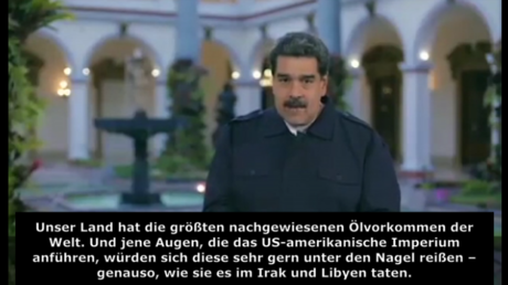 "Unser Land hat die größten nachgewiesenen Ölvorkommen der Welt. Und jene Augen, die das US-amerikanische Imperium anführen, würden sich diese sehr gern unter den Nagel reißen – genauso, wie sie es im Irak und in Libyen taten."