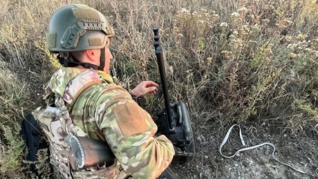 "Das ist eine Abwehranlage für FPV-Drohnen vom Typ Sowa ('Eule'). So fangen wir ihre Übertragung ab. Entsprechend verstehen wir, wohin das Vögelchen fliegt und können Gegenmaßnahmen ergreifen: die Kämpfer auf ihren Stellungen oder ihrem Weg warnen, oder die Eloka-Anlage an einem bestimmten Abschnitt einschalten."
