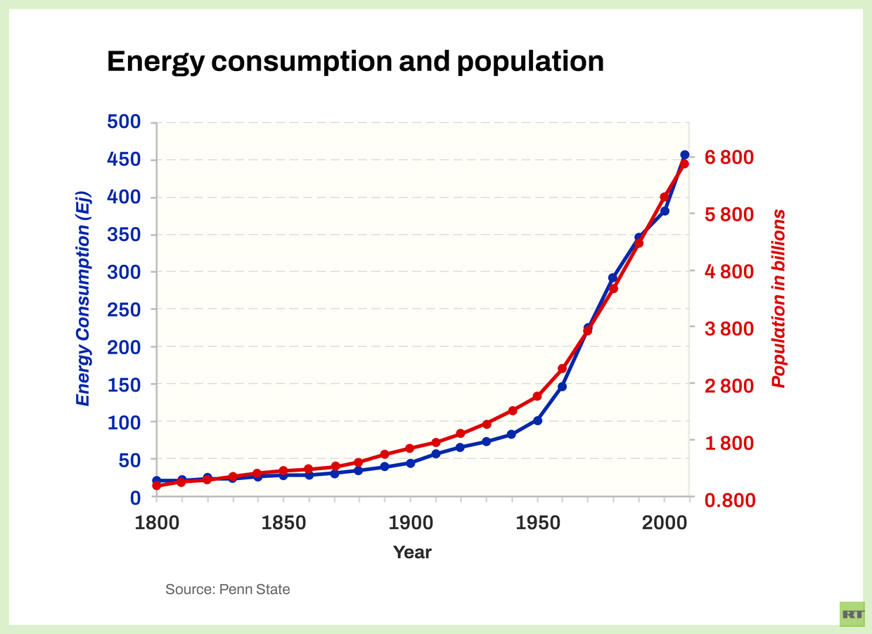 Dass die Wirtschaft letztlich ein Energiesystem ist, wäre schmerzlich offensichtlich, wenn es nicht ein blinder Fleck unserer Zivilisation wäre. Wer daran zweifelt, sollte die Weltbevölkerung und den Gesamtenergieverbrauch ab der Jungsteinzeit auf einer Zeitachse vergleichen und prüfen, ob sich die beiden Kurven unterscheiden lassen. Bevölkerungswachstum ist in erster Linie ein Energiephänomen. Energie ist grundlegend, Finanzen sind davon abgeleitet.